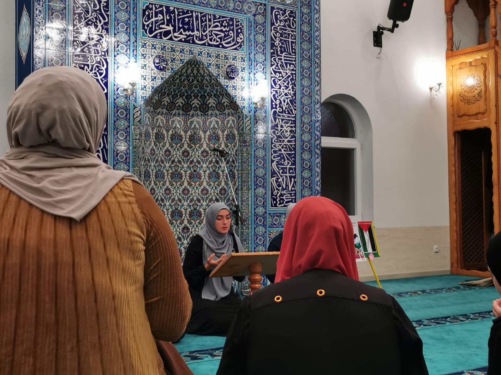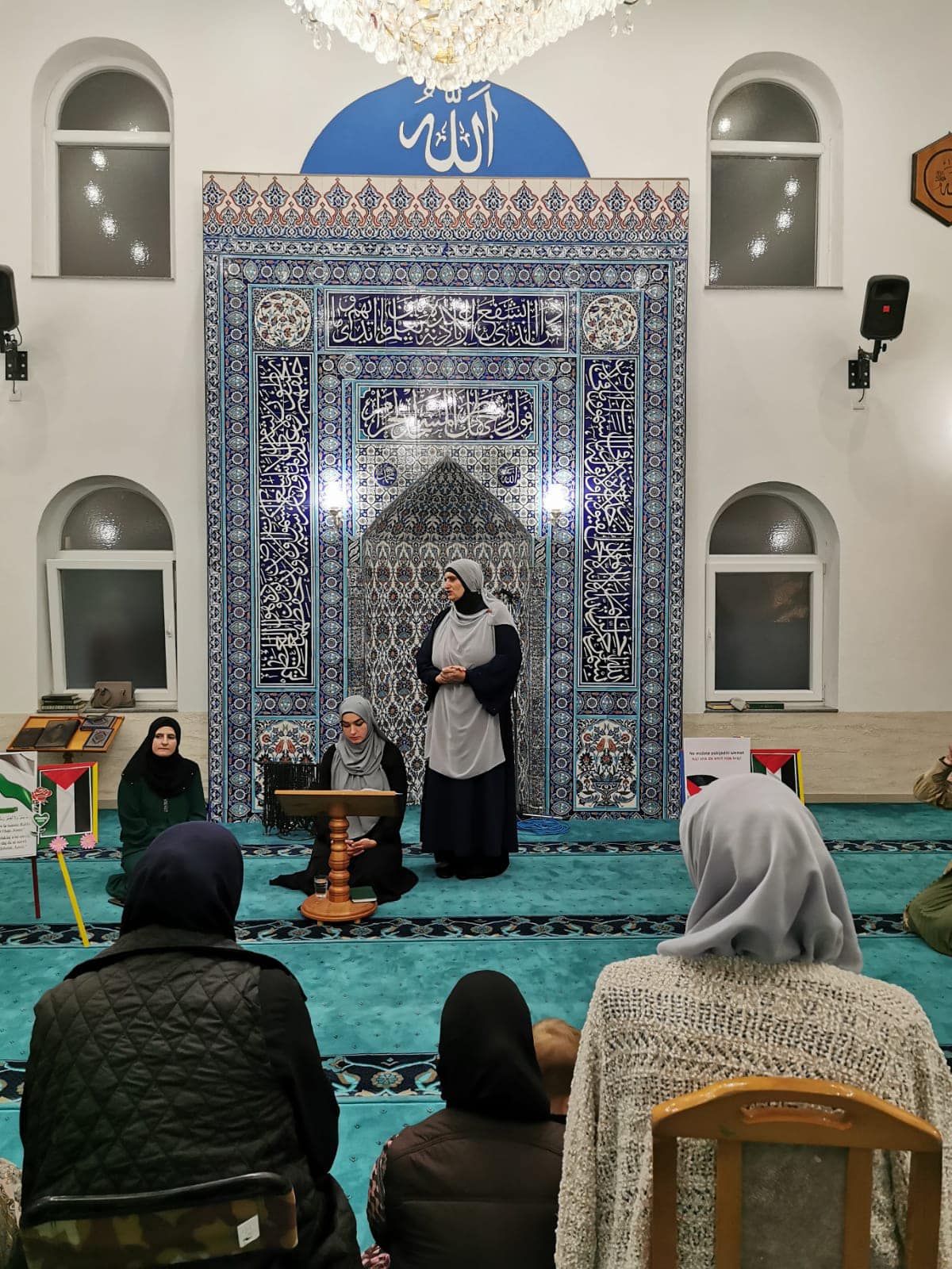 Također, održano je predavanje i program koje su učenice ,,Sinan-beg" medrese pripremile i samim tim kroz umjetnički način, učenjem Kur’ana i ilahija, podigle svijest o bitnosti govora o aktuelnim dešavanjima. One su dalje kroz program poslale poruku prisutnima o važnosti jačanja tevekula.