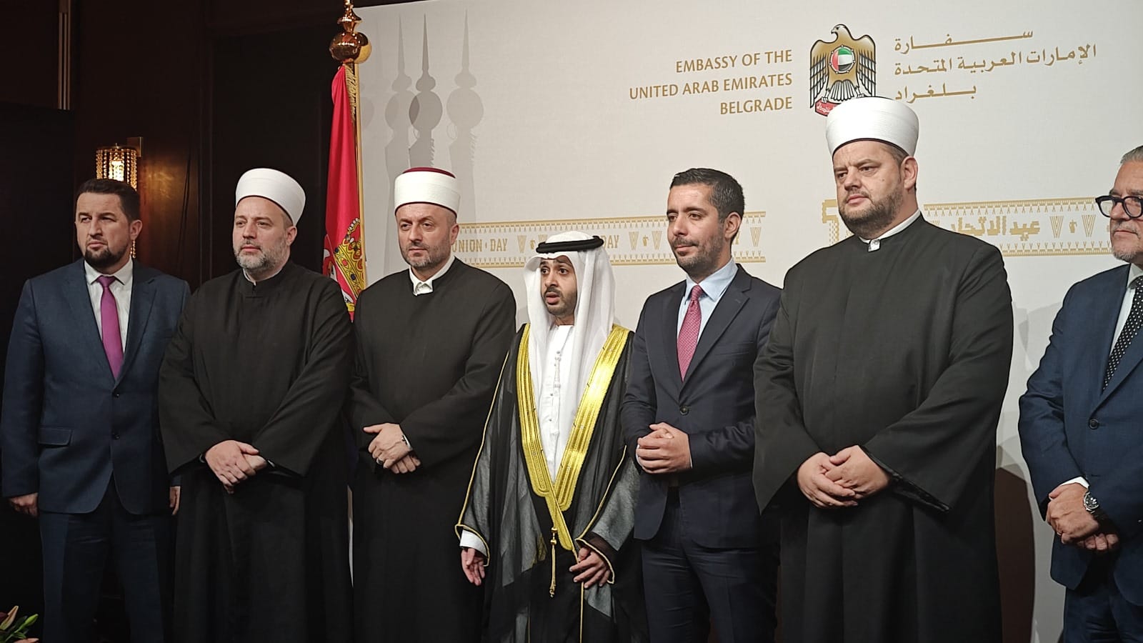 Na poziv Ambasade, a u povodu obeležavanja Nacionalnog dana Ujedinjenih Arapskih Emirata, visoka delegacija Rijaseta IZ Srbije, predvođena reisu-l-ulemom, mr. Senad-ef. Halitovićem, prisustvovala je svečanom prijemu u ambasadi u Beogradu.