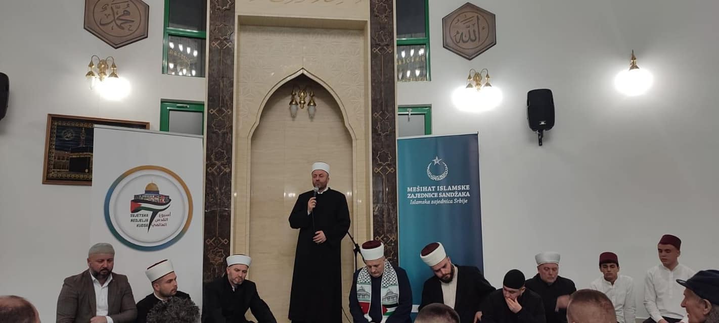 U nastavku programa, skupu se obratio reisu-l-ulema Islamske zajednice Srbije, mr. Senad-ef. Halitović, koji je govorio o važnosti Kudsa, sa posebnim akcentom na Mesdžidu-l-Aksa. Kroz hadise Pejgambera, sallallahu alejhi ve sellema, naglasio je koliko je zapravo važno to mesto obići, i da ukoliko to nismo u mogućnosti, da makar hediju pošaljemo.