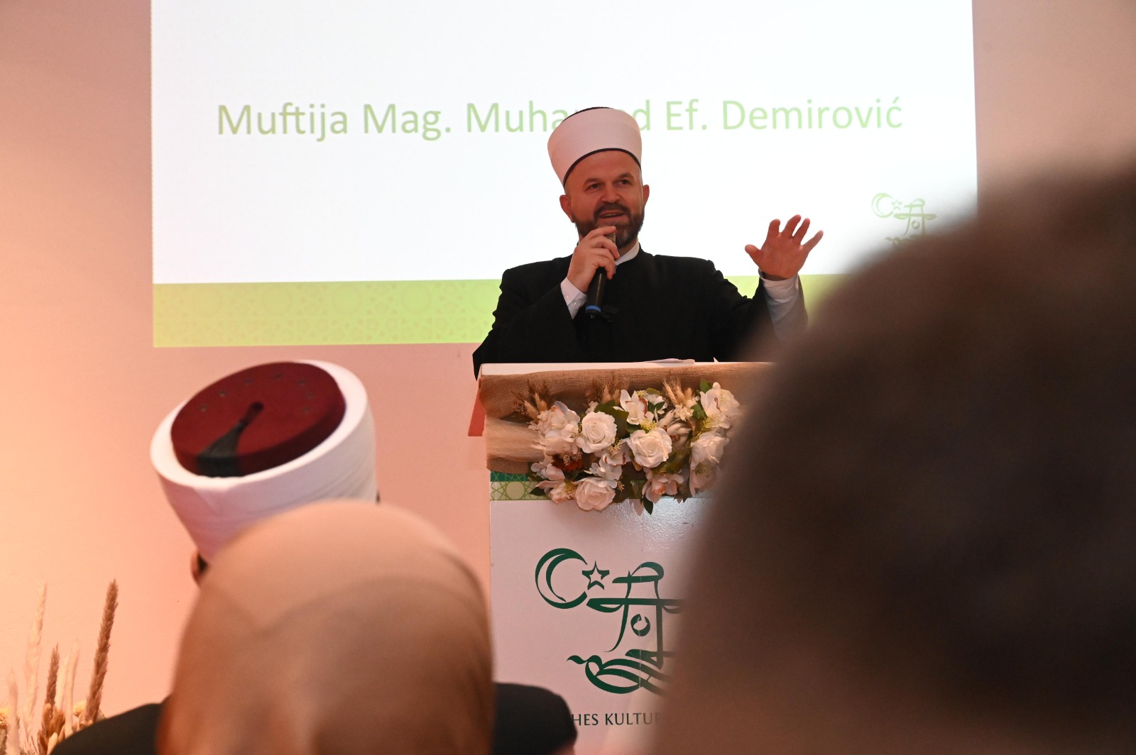 Muftija Muhamed ef. Demirović, nadahnutim predavanjem, govorio je o značaju uvakufljenja, navodeći svetle primere iz života Allahovog Poslanika, sallallahu alejhi ve sellema, i njegovih vrlih ashaba.